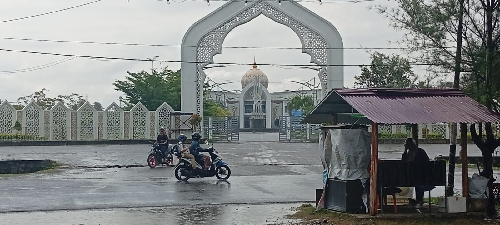 Di pusat kota Sigli, aktivitas masyarakat tetap berlangsung, namun dalam suasana kehati-hatian. Para pengendara melintasi jalan utama yang basah dan licin, sementara sebagian warga memilih berteduh di warung pinggir jalan sambil memantau kondisi cuaca yang tidak kunjung mereda.
