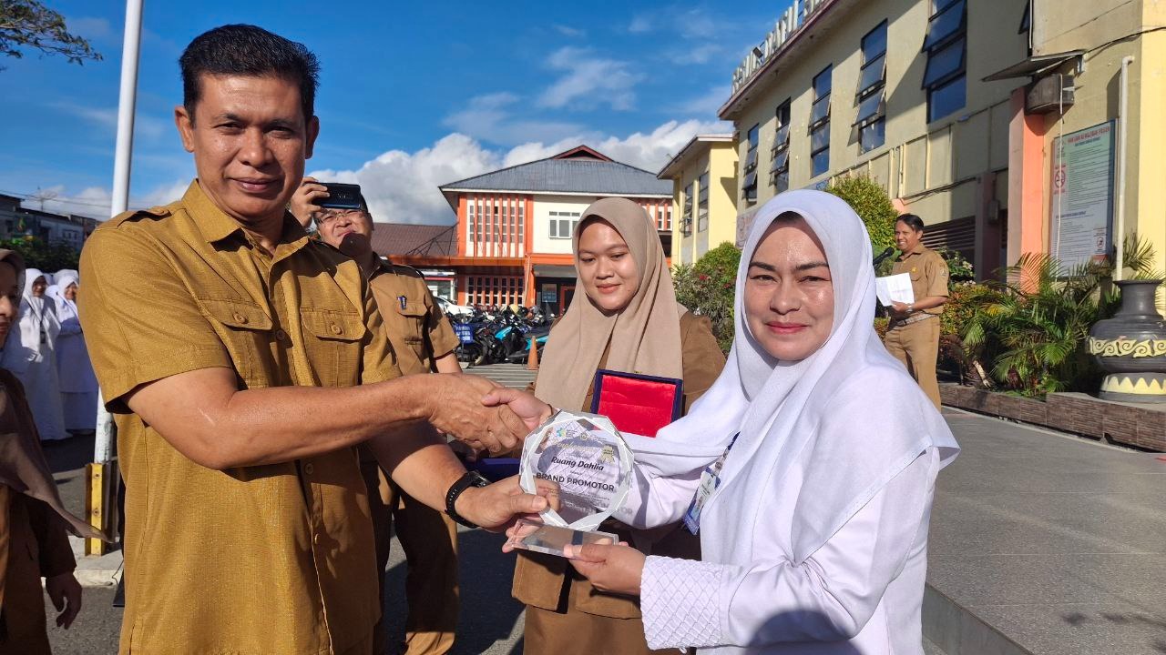 Puncak pemberian penghargaan Humas Award ini dilakukan pada saat apel pagi Senin (16/12). Penghargaan Humas Award untuk kategori Kolaborator terbaik diberikan kepada Bagian Pengembangan SDM RS dan kategori Brand Promotor diberikan kepada Ruang Perawatan Dahlia.