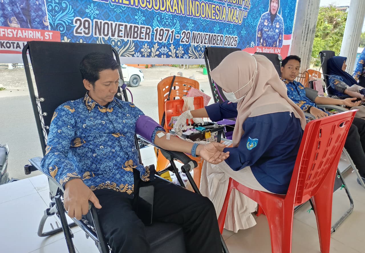 LANGSA (Waspada.id): Peringati HUT ke-54 Korpri, Pemerintah Kota Langsa berkolaborasi dengan Palang Merah Indonesia (PMI) Kota Langsa berhasil mengumpulkan 35 kantong darah dalam kegiatan bakti sosial di Tribun Lapangan Merdeka Kota Langsa, Senin (17/11).