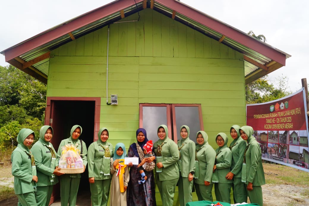 REDELONG (Waspada.id): Suasana haru menyelimuti Desa Reje Guru, Kecamatan Bukit, Kabupaten Bener Meriah, saat Ketua Persit Kartika Chandra Kirana Cabang XXV Dim 0119/BM, Ny. Rima Dwi Ahmad Fauzi, mewakili Ibu Ketua Persit PD Iskandar Muda Ny. Tri Wijayanti Joko Hadi Susilo, menyerahkan tali asih kepada penerima manfaat program Rumah Tidak Layak Huni (RTLH), Jumat (7/11/2025).