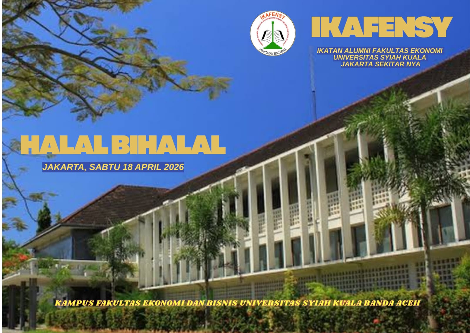 JAKARTA (Waspada.id): Ikatan Alumni Fakultas Ekonomi dan Bisnis Universitas Syiah Kuala (Ikafensy) Jakarta akan menggelar acara halalbihalal Idulfitri 1447 Hijriah di aula Badan Penghubung Pemerintah Aceh (BPPA), Jalan RP Saroso, Cikini, Jakarta Pusat, Sabtu, 18 April 2026.