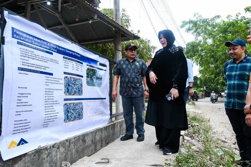 BANDA ACEH (Waspada.id): Wali Kota Banda Aceh Illiza Sa’aduddin Djamal meninjau proyek pembangunan Jalan Prof A Majid Ibrahim yang selama ini rusak parah, tepatnya di Gampong Merduati, Jumat, (31/10/25).