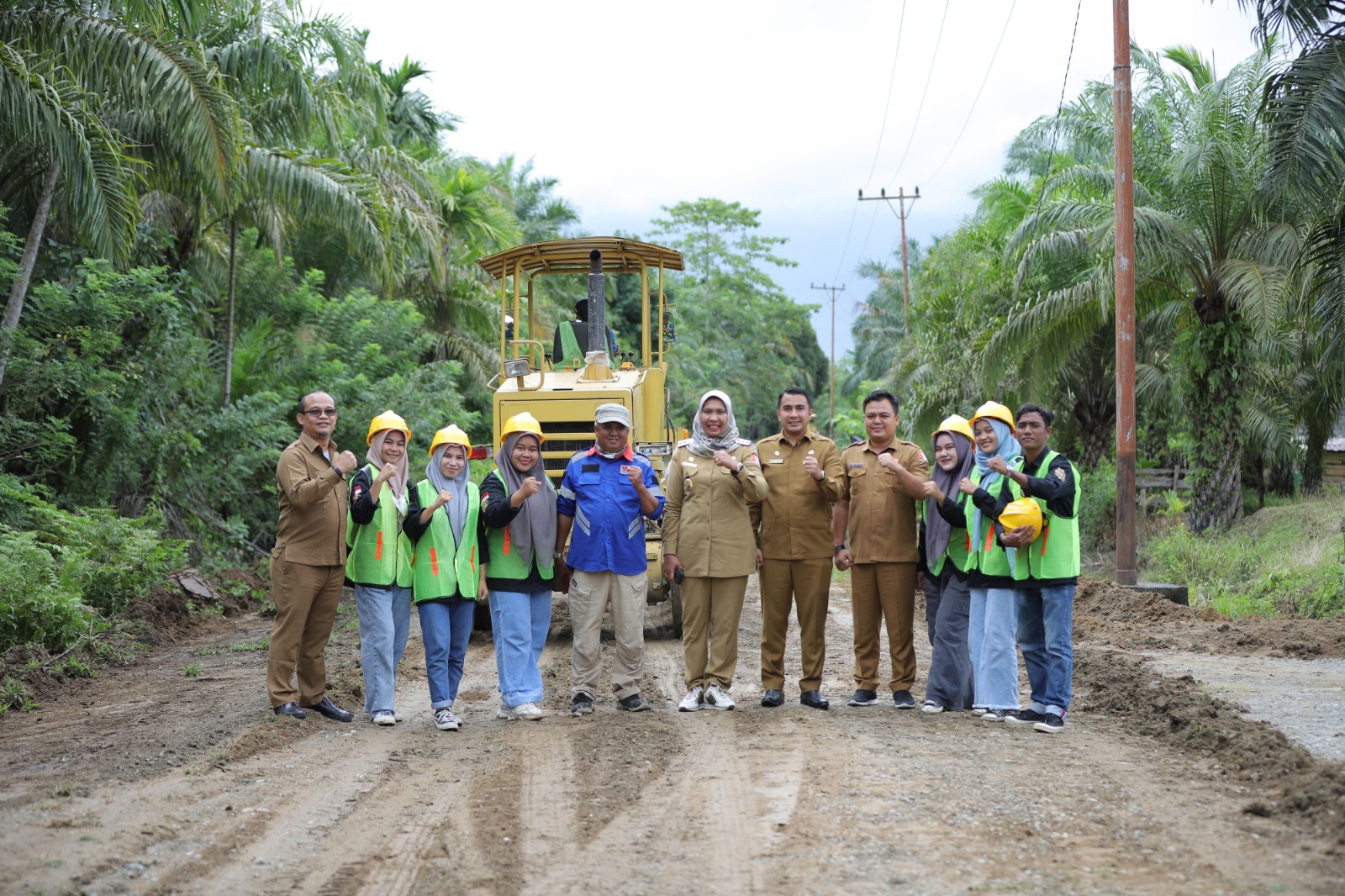 Pj Bupati Nagan Raya Fitriany Farhas saat meninjau jalan yang dibangun Rabu ( 4/10).(Waspada/Ist)