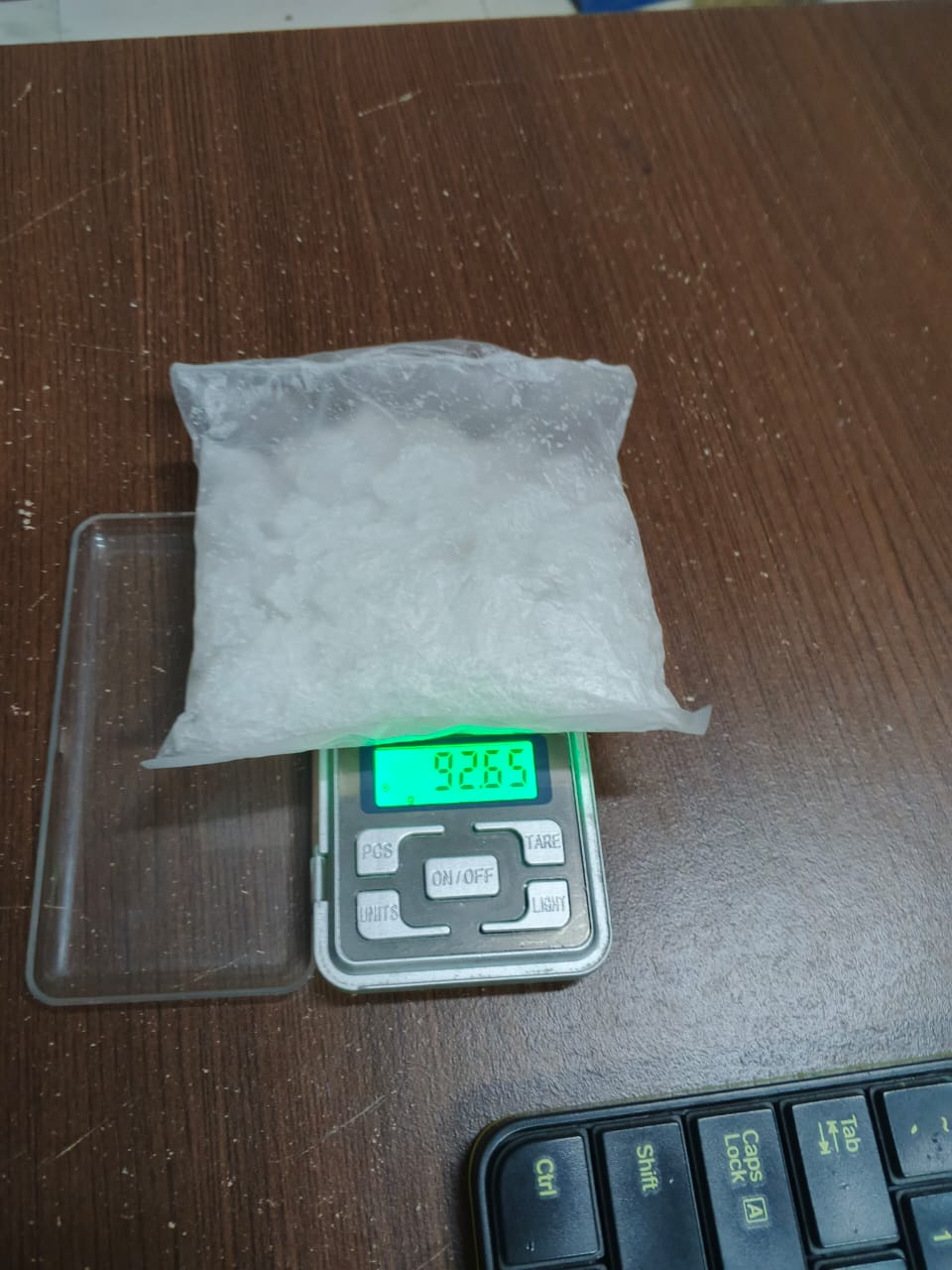 Dari tangan tersangka, petugas menyita barang bukti berupa 1 bungkus sabu seberat 92,65 gram, 1 unit sepeda motor Supra X 125 tanpa bodi dan tanpa plat nomor, 1 unit handphone Realme warna hitam, uang tunai sebesar Rp190.000, 2 bal plastik klip kecil, 1 buah pisau cutter warna merah, 1 buah gunting sedang warna hitam hijau, 1 unit timbangan elektrik kecil, dan 1 kantong plastik kresek hitam ukuran sedang.