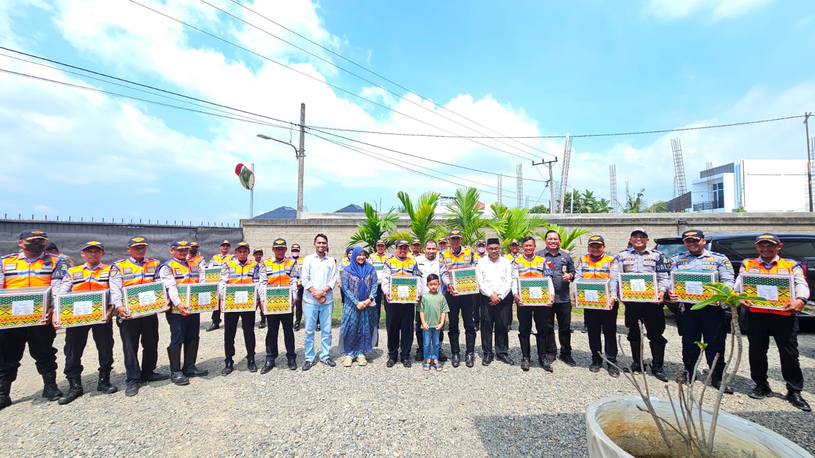 KOTA JANTHO (Waspada): Penjabat (Pj) Bupati Aceh Besar, Muhammad Iswanto bersama istri Cut Rezky Handayani membagikan bingkisan lebaran kepada 38 personel kontrak Dinas Perhubungan (Dishub) Kabupaten Aceh Besar, Jumat (5/4).