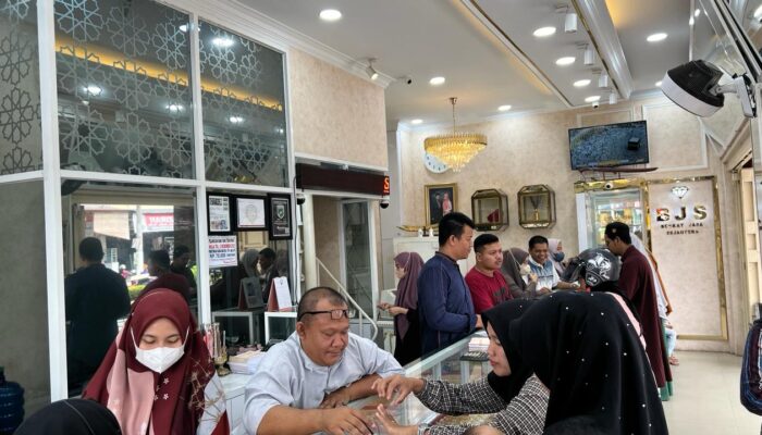 Meskipun harga emas meroket, namun menjelang hari raya Idul Fitri masyarakat Kota Langsa berbondong-bondong untuk membeli emas.