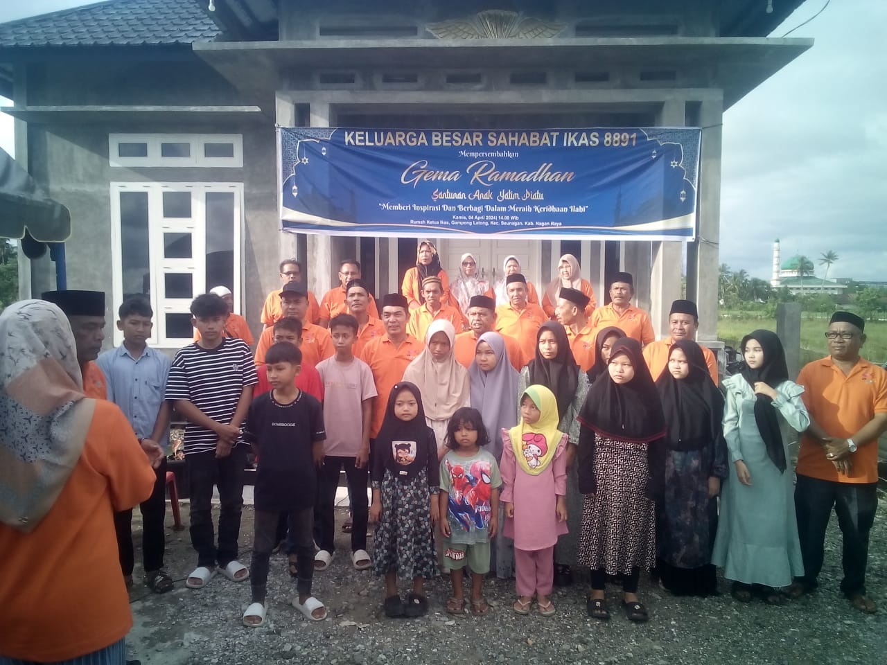 NAGAN RAYA (Waspada): Ikatan Keluarga Alumni SMP dan SMA (IKAS) 8891 menyantuni anak yatim dan piatu yang dilaksanakan Desa Latong Kecamatan Seunagan Kabupaten Nagan Raya, Kabupaten, Kamis (4/ 4)