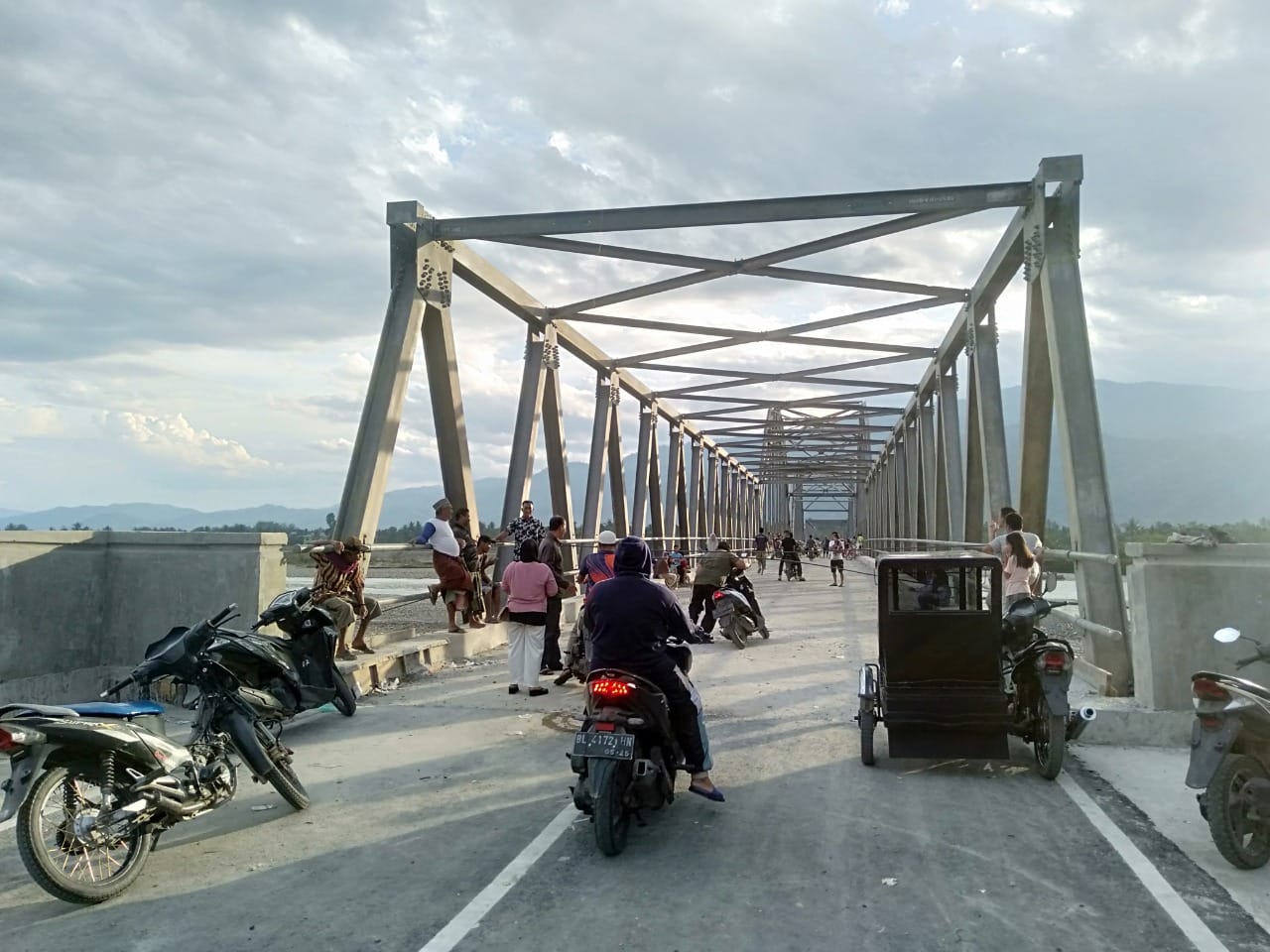 FOTO UTAMA : Jembatan rangka baja Silayank yang menghubungkan kecamatan Bambrl dengan 3 kecamatan di wilayah sebereng Sungai Alas, telah rampung dan sudah bisa dilewati kendaraan roda dua dan tiga. Waspada/Ist
