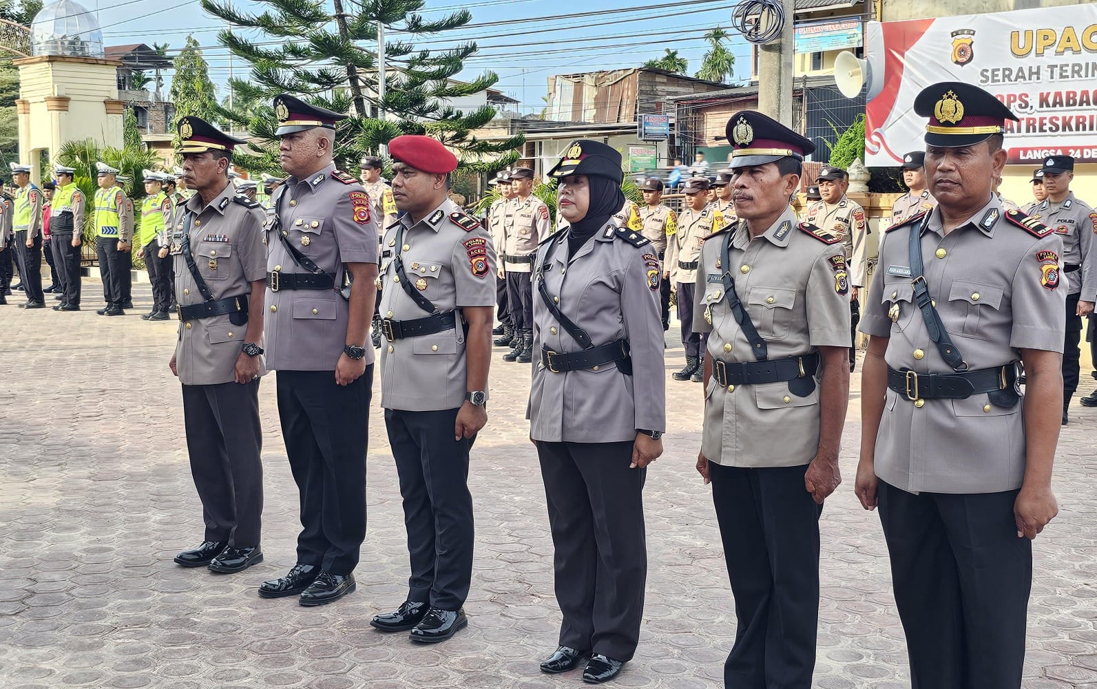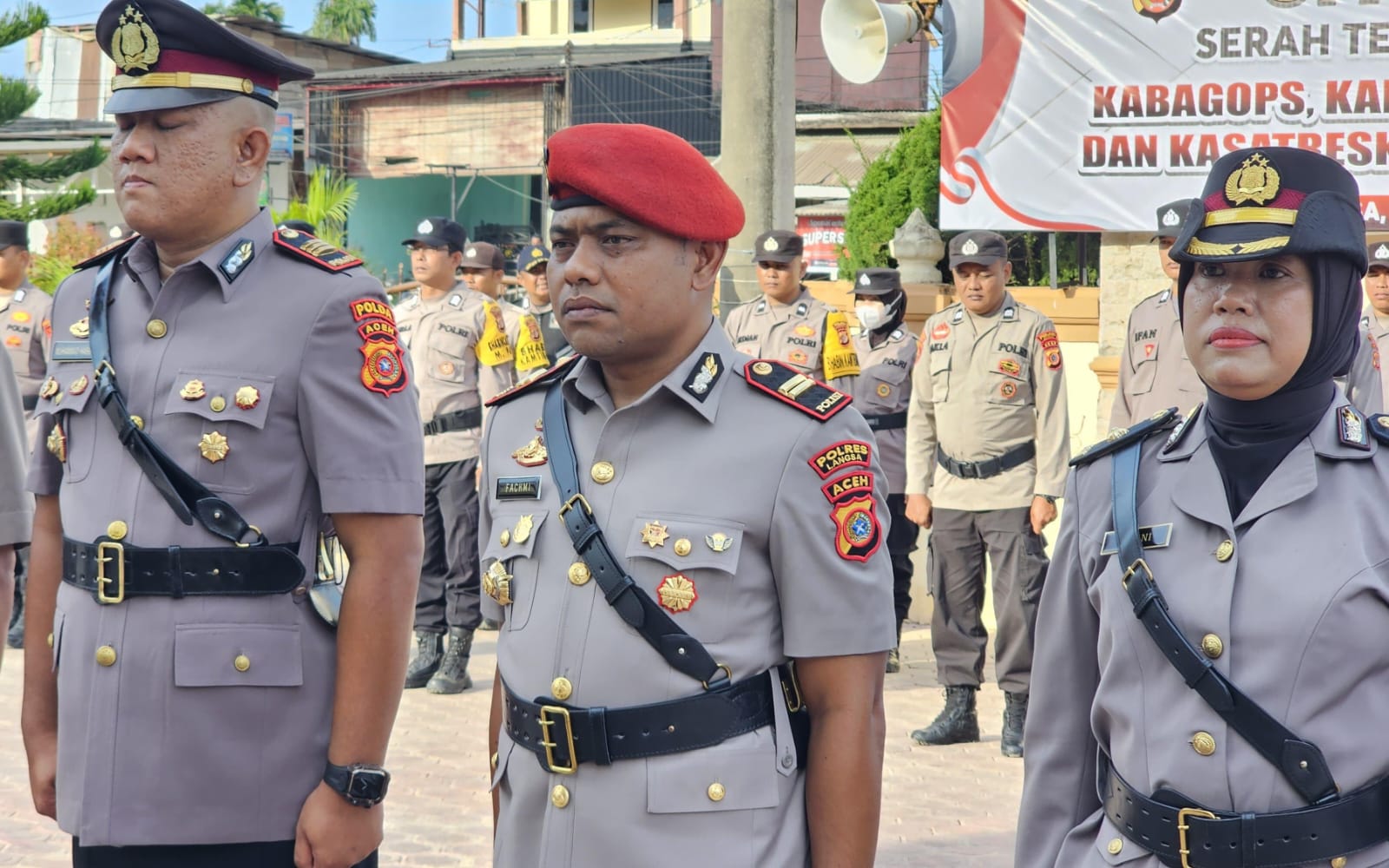 Hadir Wakapolres Langsa, para Pejabat Utama (PJU), Kapolsek jajaran, perwira, bintara, serta ASN Polres Langsa.