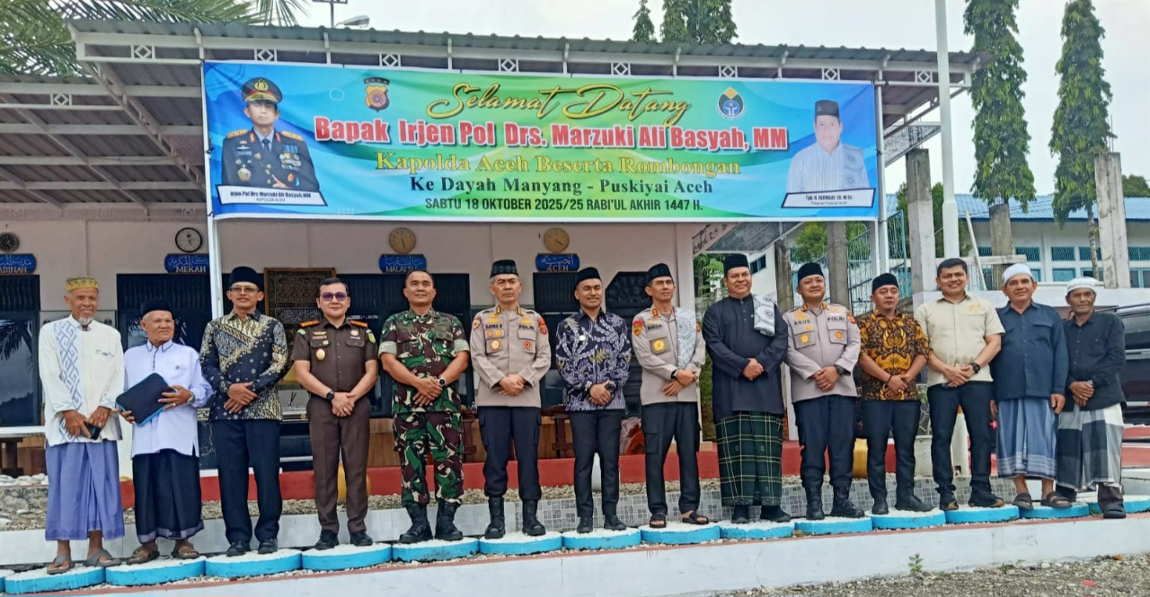 Abu Dayah Manyang Puskiyai Aceh Tgk H Farmadi ZA MSc, dalam kesempatan itu mengucapkan terima kasih atas kunjungan Kapolda ke Dayah Manyang, yang berada di pinggiran bantaran Sungai Krueng Baru ini. “Insya Allah, kita selalu bersinergi, baik dengan kepolisian, maupun dengan TNI,” ujarnya.