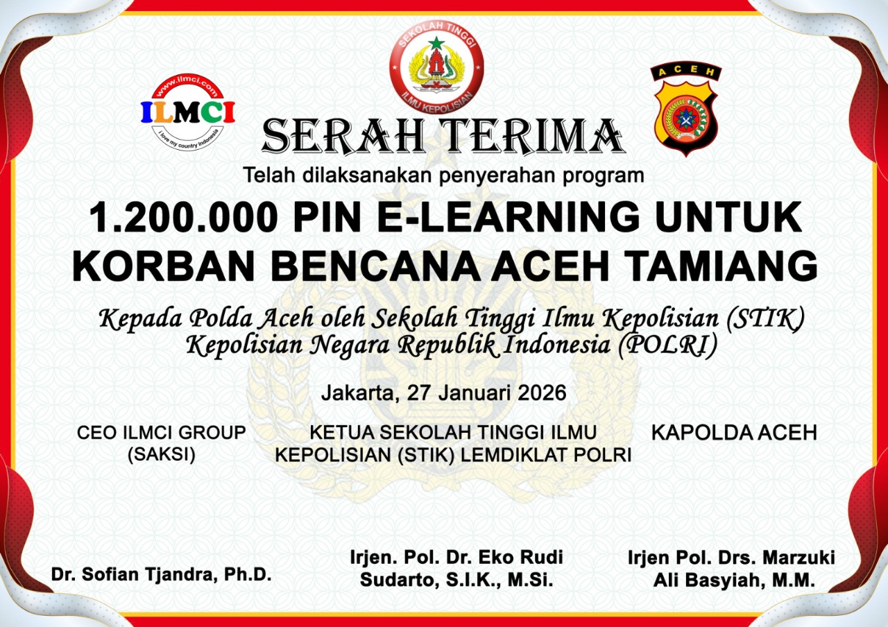 Program e-learning ini merupakan sumbangsih ILMCI Group melalui STIK Lemdiklat Polri sebagai bentuk kepedulian terhadap keberlanjutan pendidikan anak-anak di wilayah terdampak bencana, khususnya di Kabupaten Aceh Tamiang. Serah terima tersebut berlangsung di Jakarta, Selasa (27/01/2026).