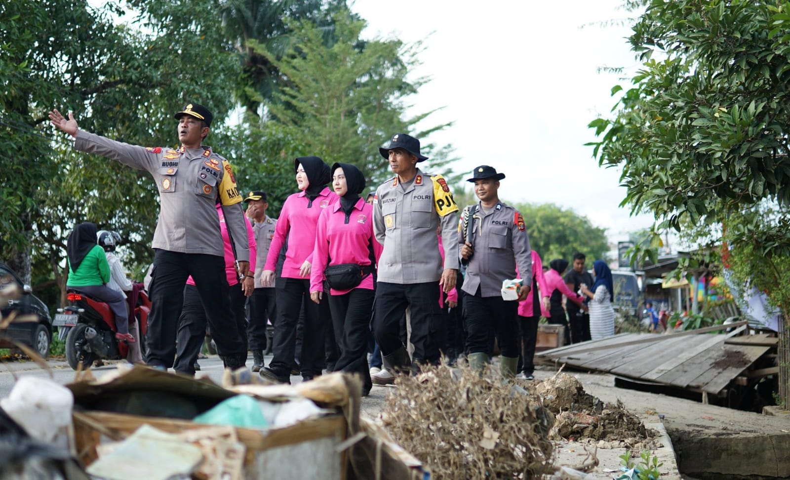 LANGSA (Waspada.id): Kapolda Aceh Irjen Pol. Drs. Marzuki Ali Basyah, M.M., didampingi Ketua Bhayangkari Daerah Aceh Ny. Ira Marzuki melaksanakan kunjungan kerja ke wilayah hukum Polres Langsa dalam rangka pemantauan kondisi pasca banjir yang melanda Kota Langsa sebagai bentuk komitmen dan kepedulian nyata terhadap wilayah yang terdampak bencana alam, Minggu (21/12/2025).
