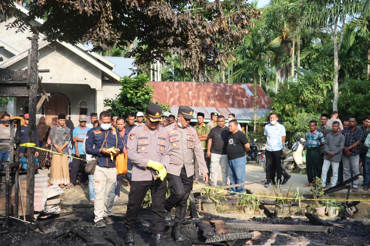 Selain menyerahkan bantuan, AKBP Nanang Indra Bakti juga memimpin langsung olah tempat kejadian perkara (TKP) untuk menyelidiki penyebab kebakaran.