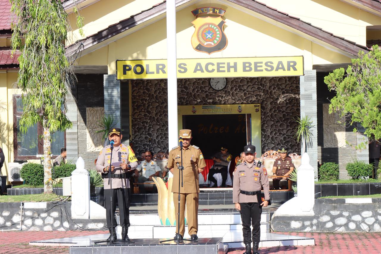 Adapun Pimpinan Apel gelar pasukan secara kolektif oleh Kapolres Aceh Besar AKBP Sujoko S.I.K.M.H.,dan Wakil Bupati Aceh Besar Drs.H. Syukri A.Jalil. Apel gelar pasukan tersebut juga turut dihadiri oleh Forkopimda, para tamu undangan serta diikuti oleh peserta Apel yang terdiri dari 1 Pleton Perwira,1 Pleton Staf Gabungan Polres,1 Pleton Sat Samapta,1 Pleton Sat Lantas,1 Pleton Gabungan Sat Intel dan Reskrim, 1 Pleton Bhabinkamtibmas, 1 Pleton TNI,1 Pleton Dishub, 1 Pleton Sat Pol-PP, dan 1 Pleton BPBD Aceh Besar.