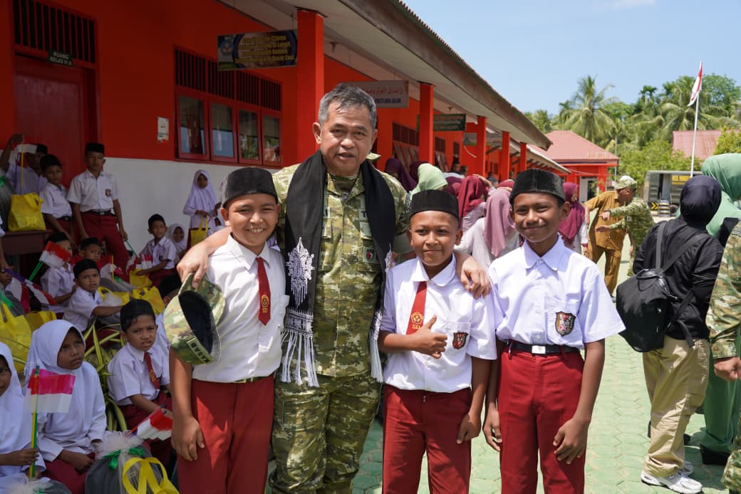 Dalam kesempatan tersebut, Kasad bersama Istri menyempatkan menyapa para siswa sekaligus menyerahkan tali asih serta berbagai perlengkapan sekolah berupa tas sekolah, alat tulis, serta perlengkapan belajar lainnya kepada para siswa. Hal itu sebagai bentuk kepedulian TNI Angkatan Darat terhadap dunia pendidikan.
