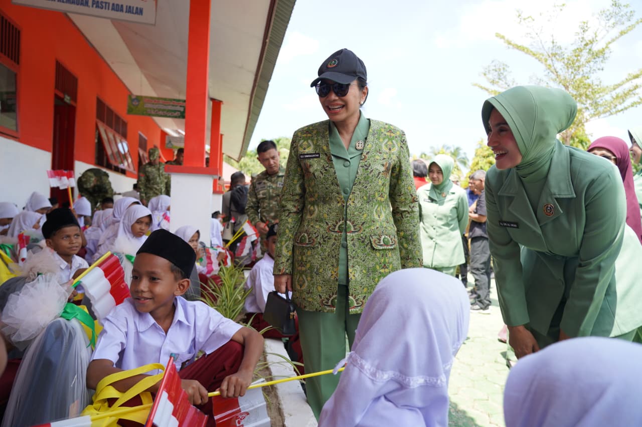 Mengawali kunjungannya, Kasad dan Ketua Umum Persit didampingi Pangdam IM, Mayjen TNI Joko Hadi Susilo, Danrem 011/Lilawangsa, Kolonel Inf Ali Imraan beserta Forkopimda Aceh, dan Tokoh Masyarakat, menuju SD Negeri 7 Desa Glee Dagang, Kecamatan Sawang, Kabupaten Aceh Utara.