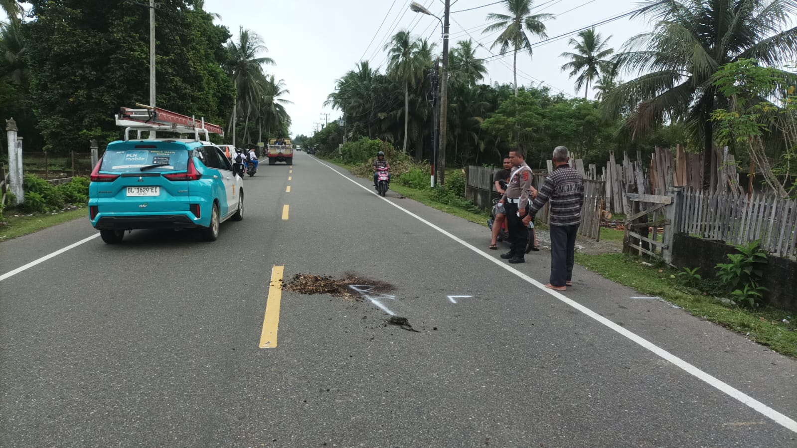 Kecelakaan terjadi sekitar pukul 08.00 WIB ini melibatkan sepeda motor Honda Beat dengan nomor polisi BL 5654 EAG dan mobil barang jenis Mitsubishi Dump Truck bernomor polisi BL 8728 AD.