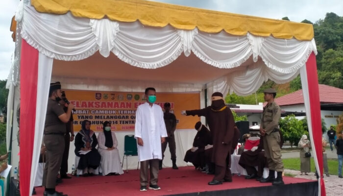 BLANGPIDIE (Waspada): Kejaksaan Negeri (Kejari) Aceh Barat Daya (Abdya), Rabu (28/12) sore lalu, melakukan eksekusi hukuman cambuk, terhadap 9 terpidana pelanggar Syariat Islam dalam wilayah hukum ‘Nanggroe Breuh Sigupai’ di halaman kantor Kejari, kompleks perkantoran Bukit Hijau, Blangpidie.