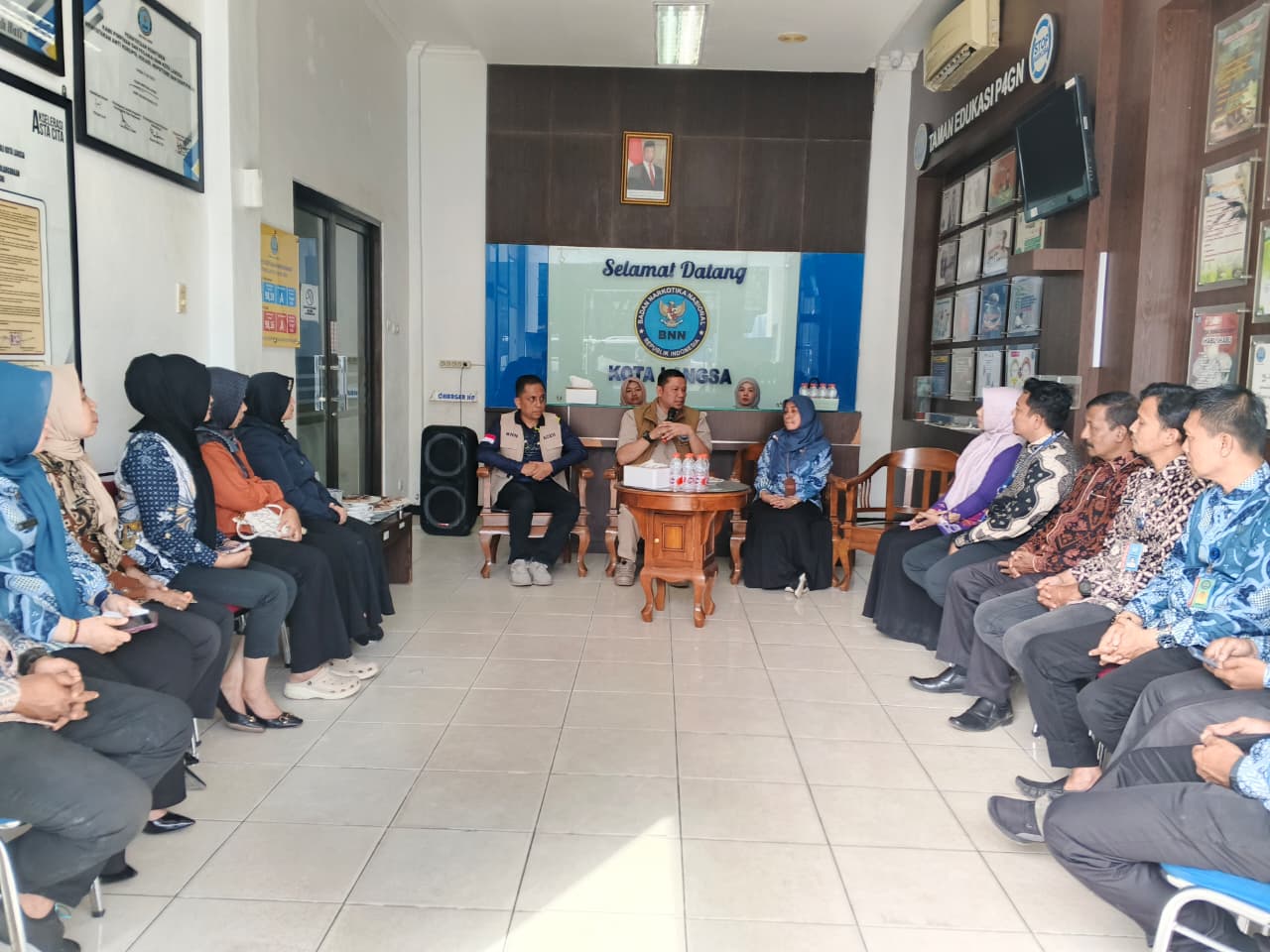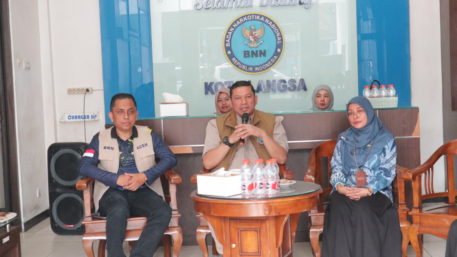 Kedatangan rombongan diikuti Kabag Umum BNNP Aceh, Hasnanda, ST. MM. MT, Koordinator Bidang Rehabilitasi BNNP Aceh, Saiful, S.Pd dan PJU BNNP Aceh disambut Plt. Kepala BNN Kota Langsa, Fitriani, SP, para Katim dan seluruh personel.