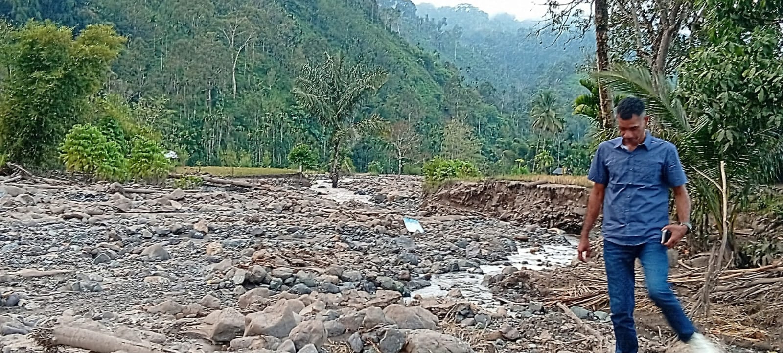 Menurutnya, ketebalan lumpur yang mencapai belasan sentimeter di sejumlah titik membuat proses normalisasi tidak bisa dilakukan secara manual. Sebagian sawah telah memasuki tahap benih semai, sementara lainnya sudah ditanami ketika banjir terjadi.