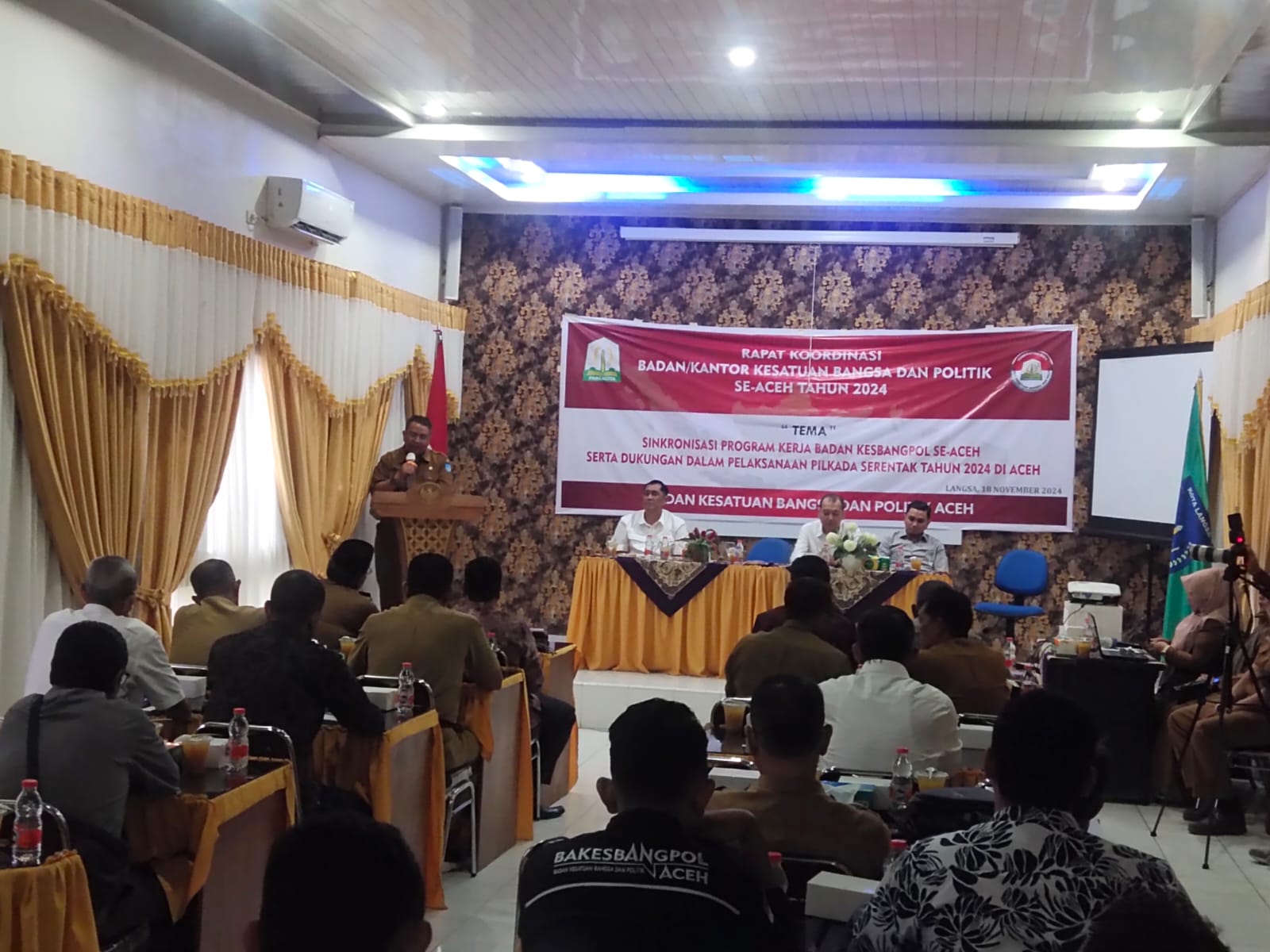 Demikian Kepala Badan Kesbangpol Kota Langsa, Drs Zulhadisyah S, MSP saat membuka secara resmi rapat koordinasi Badan Kesatuan Bangsa dan Politik se-Aceh tahun 2024 di Aula Kesbangpol Langsa, Senin (18/11).