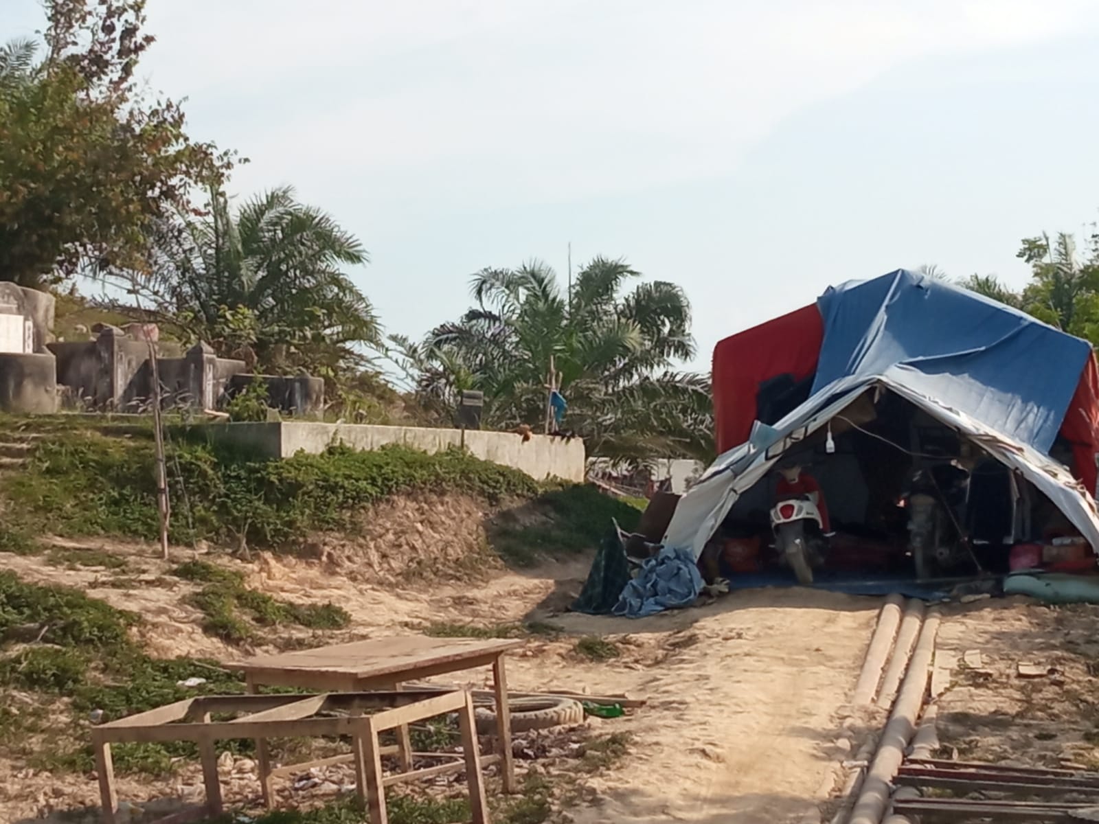 Di Kampung Durian, tenda-tenda berdiri di kompleks kuburan Tionghoa. Di Kota Lintang, Fahmi dan keluarganya masih menyebut terpal sebagai atap. Di Suka Jadi, tenda-tenda memang “dibongkar”—tapi penghuninya hanya dipindahkan ke gedung olahraga.