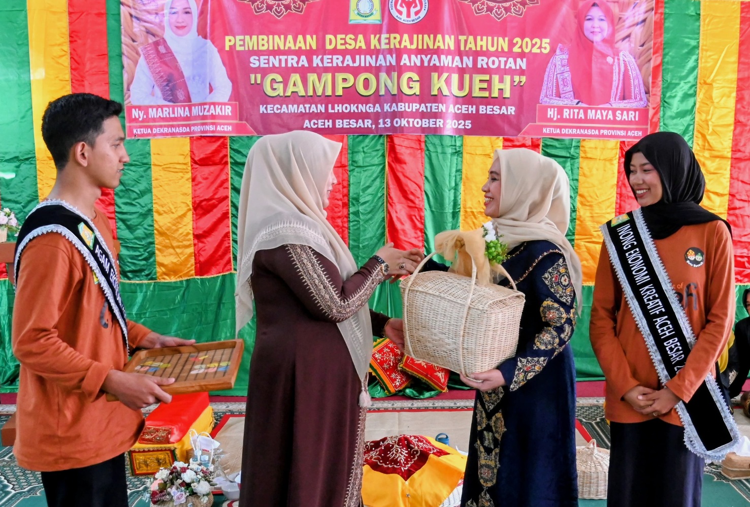 “Kita berharap agar para pelaku UMKM di Aceh Besar tidak hanya fokus pada produksi dan kualitas, tetapi juga harus memiliki legalitas yang sah. Karena dengan legalitas itu, produk kita bisa lebih mudah dipromosikan dan dipercaya oleh pasar, bahkan sampai ke luar negeri,” ujar Rita pada pembinaan sentra kerajinan anyaman rotan di Gampong Kueh, Kecamatan Lhoknga, Kabupaten Aceh Besar, Senin (13/10).