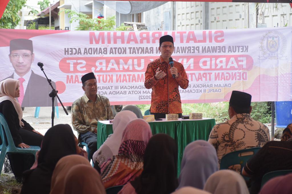 Teks foto: Ketua DPRK Banda Aceh Farid Nyak Umar sedang menyampaikan arahannya pada acara reses di Gampong Keuramat, Kecamatan Kuta Alam, Banda Aceh, Sabtu (22/10/22). (Waspada/T.Mansursyah)