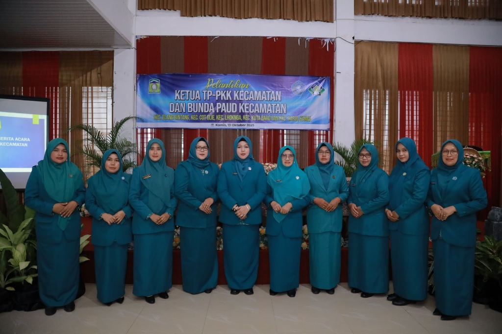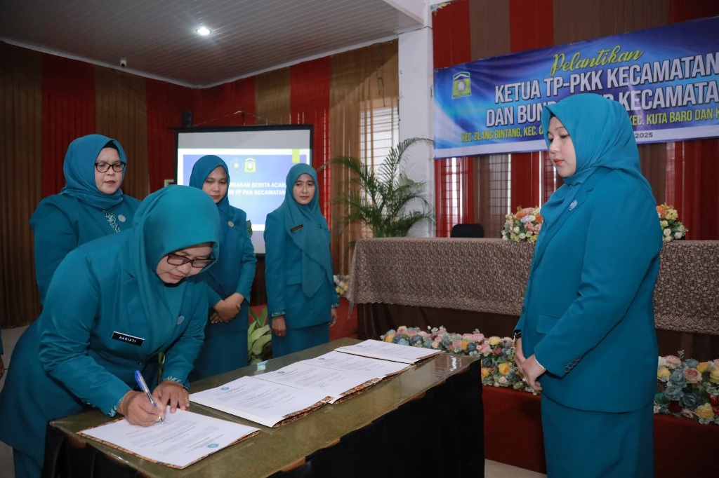 Lima Ketua TP PKK sekaligus Bunda PAUD Kecamatan yang dilantik tersebut yakni Ketua TP PKK dan Bunda PAUD Kecamatan Blang Bintang Bidasari SE Ak, Ketua TP PKK dan Bunda PAUD Kecamatan Darul Kamal Mariana, Ketua TP PKK dan Bunda PAUD Kecamatan Kuta Cot Glie Mardiana SE, Ketua TP PKK dan Bunda PAUD Kecamatan Lhoknga Afriani SPdI, dan Ketua TP PKK dan Bunda PAUD Kecamatan Kuta Baro Hariati Amd Keb.