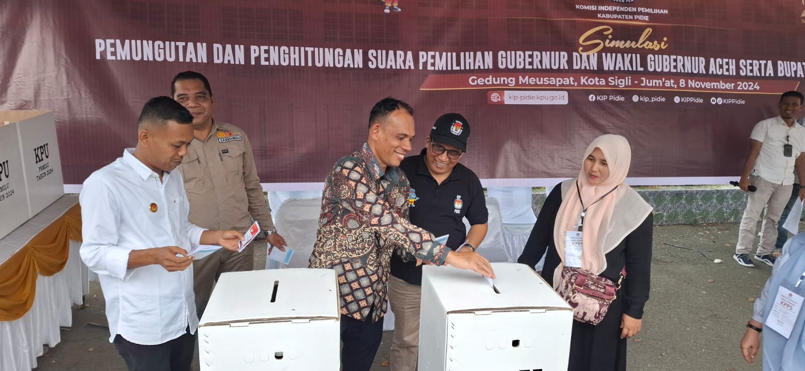 Adapun kegiatan simulasi, ini dilakukan selain bertujuan sebagai uji tiru, juga untuk membantu para pemilih memahami tata cara menggunakan hak pilih di tempat pemungutan suara (TPS) pada Pilkada Pidie 2024.