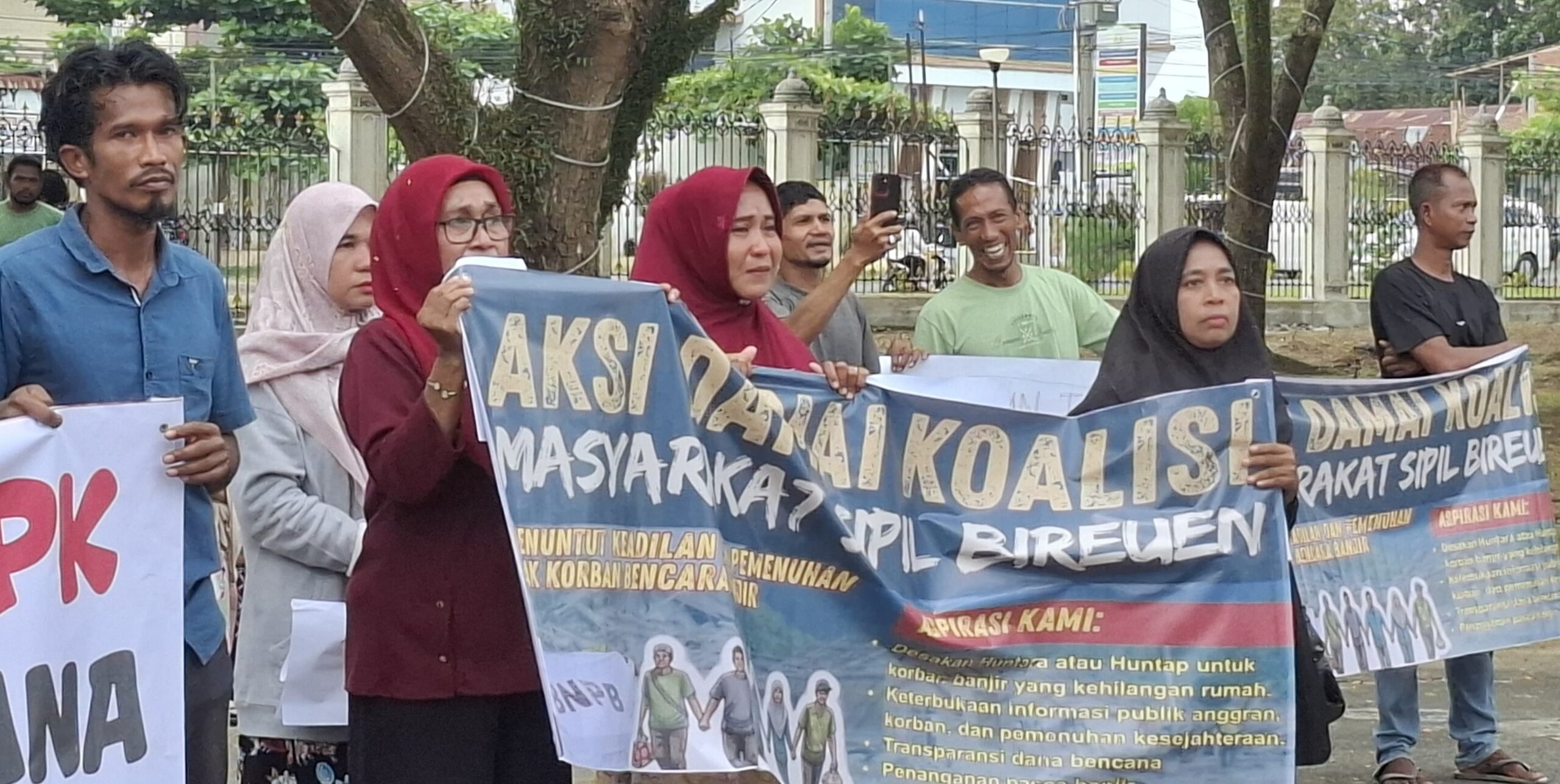 Hal serupa disampaikan pengungsi lain, M. Amin. Ia menegaskan perjuangan mereka bukan hanya untuk kelompok di halaman kantor bupati, melainkan seluruh masyarakat terdampak banjir. “Dari awal kami sepakat, perjuangan ini untuk semua korban banjir di Bireuen. Sudah hampir empat bulan pascabencana, tapi bantuan seperti DTH, Jadup, huntara hingga huntap masih belum jelas. Data juga amburadul,” terangnya.