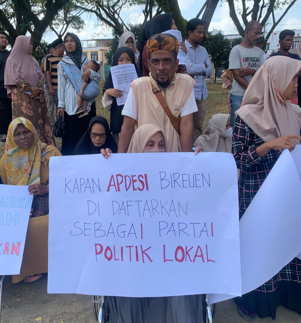 Mereka menuntut tempat tinggal yang layak, karena hingga lebih dari tiga bulan pasca bencana pada akhir November 2025 lalu, sebagian masih bertahan di tenda darurat.