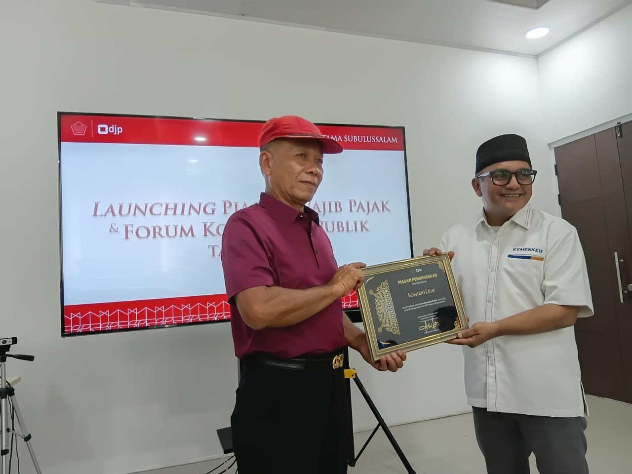Sebelum sesi diskusi, Kepala KPP, Rangkuti menyerahkan Piagam Wajib Pajak dan Piagam Penghargaan atas partisipasi pada Forum Konsultasi Publik KPP Pratama Subulussalam 2025.