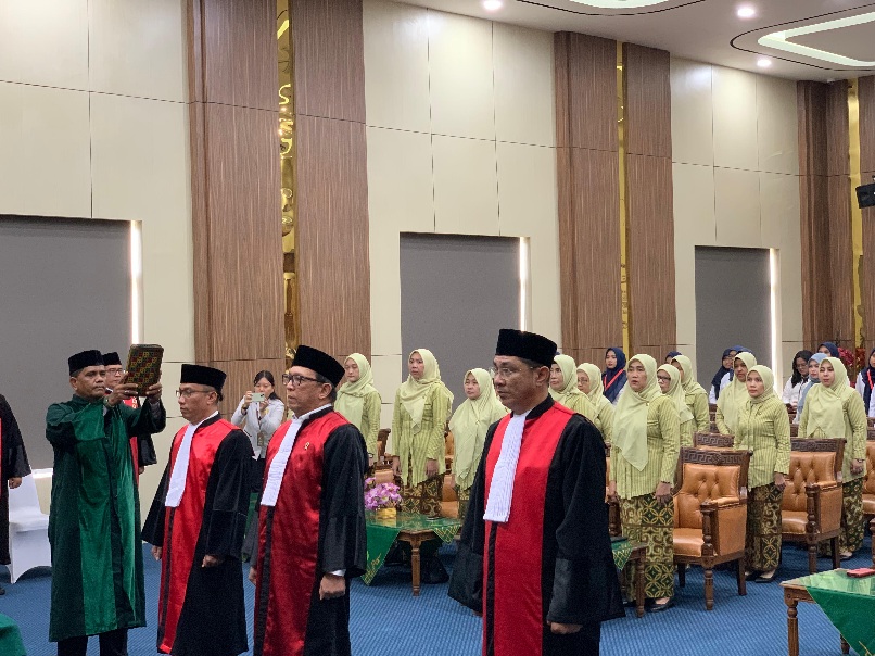 Acara yang digelar secara khidmat mencakup pengambilan sumpah, pelantikan, dan serah terima jabatan dari KPN lama ke baru, didampingi Hakim Tinggi Rahmawati, SH, Hakim Tinggi Ayumi Susriani, SH, serta dua saksi dari Hakim Tinggi. Turut hadir para Hakim Tinggi, Hakim Ad Hoc, pejabat struktural dan fungsional PT BNA, Dharmayukti Karini (DYK), KPN dari beberapa daerah, dan keluarga pejabat yang dilantik.