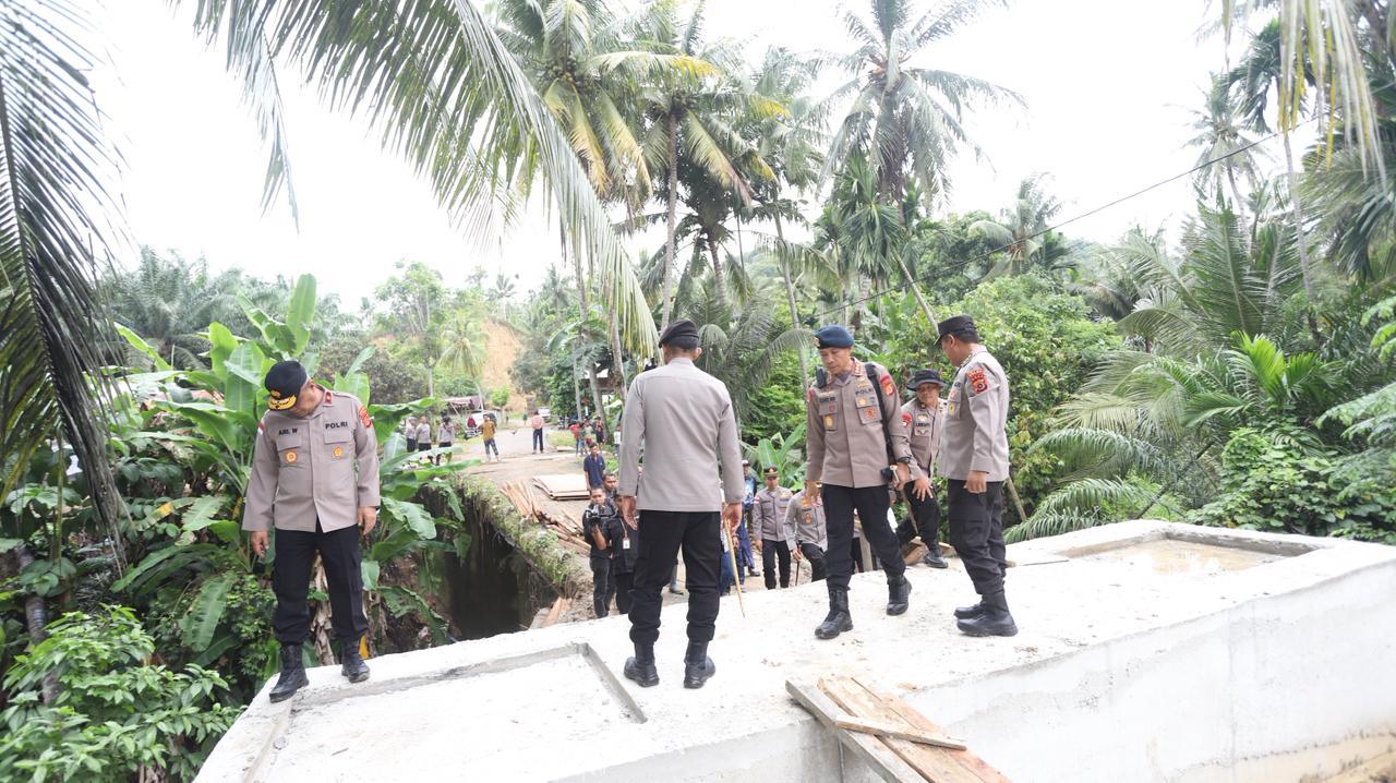Kapolda Marzuki melihat langsung kondisi lokasi yang direncanakan menjadi titik pembangunan Jembatan Bailey. Berdasarkan laporan di lapangan, pekerjaan pondasi dan bantalan jembatan saat ini masih berada pada tahap awal.
