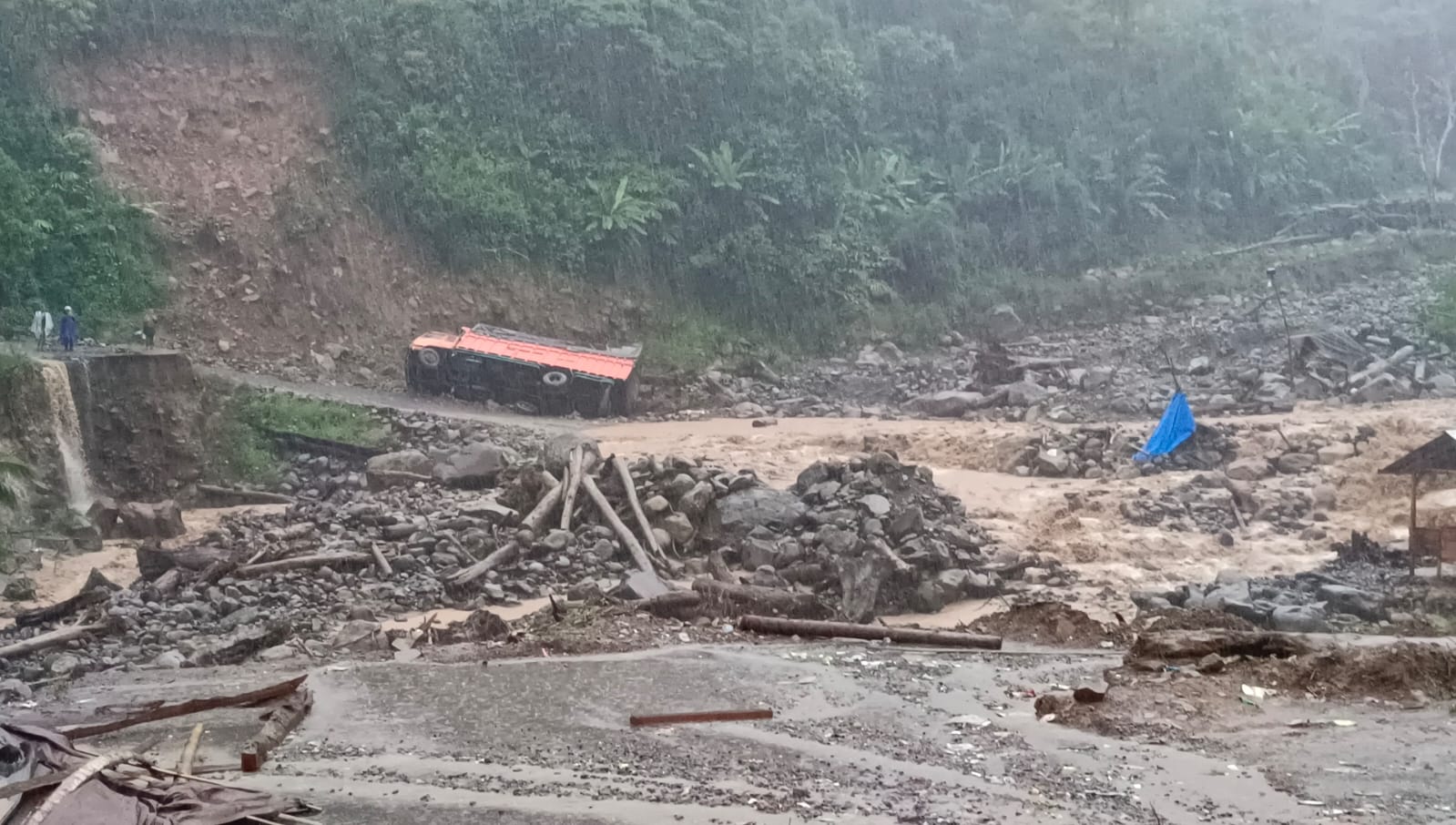 Luapan air terjadi di kawasan Jembatan Wih Porak, Kecamatan Pintu Rime Gayo. Debit air yang meningkat drastis menggenangi badan jalan hingga menutup akses utama penghubung antara Kabupaten Bireuen dan Takengon.