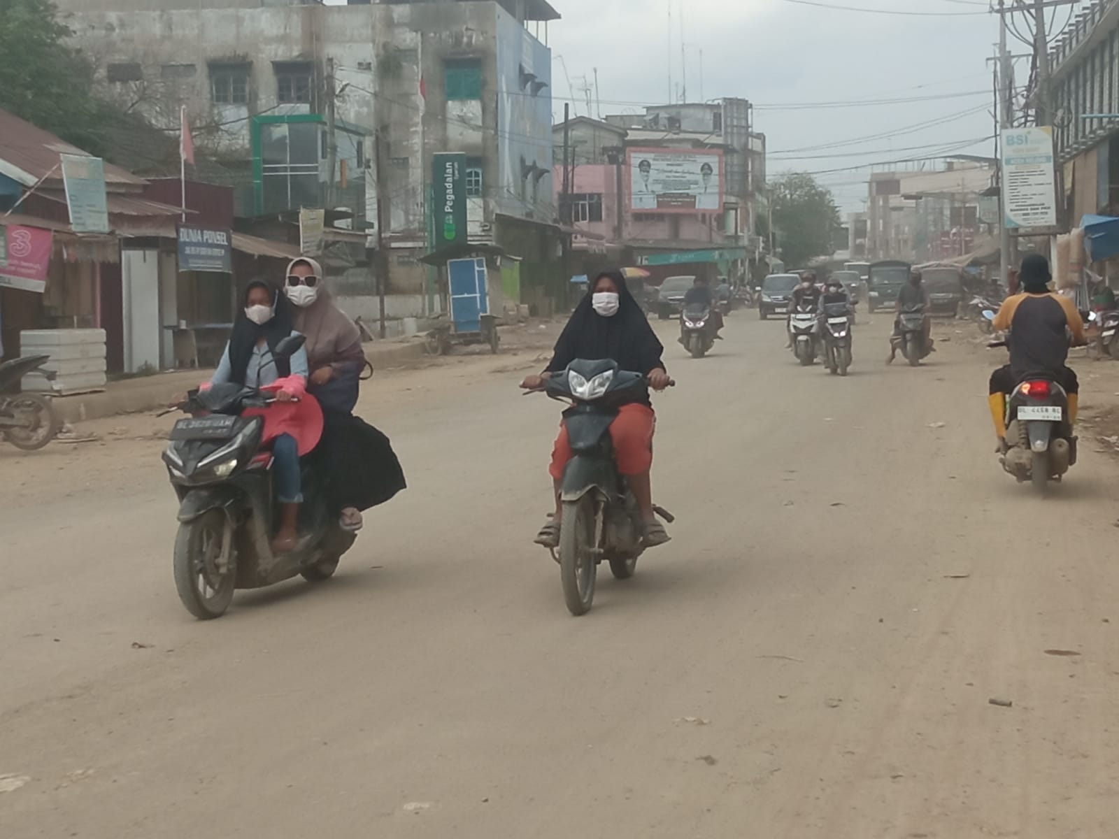 Selain itu, debu yang terbang hingga jarak pandang 50 hingga 100 meter akibat lalu lintas kendaraan juga menjadi masalah kesehatan. Warga yang tidak menggunakan masker berisiko terkena Infeksi Saluran Pernapasan Akut (ISPA).