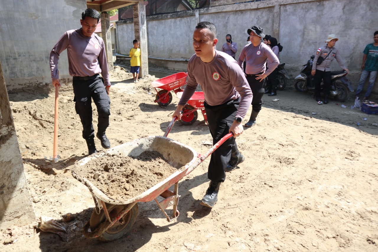 Kegiatan bakti sosial tersebut difokuskan pada bantuan kemanusiaan bagi warga yang terdampak banjir, dengan membantu membersihkan rumah-rumah masyarakat dari sisa material banjir seperti lumpur, sampah, serta puing-puing yang terbawa arus. Seluruh peserta kegiatan tampak bergotong royong dan bahu-membahu dalam mempercepat proses pemulihan lingkungan permukiman warga.