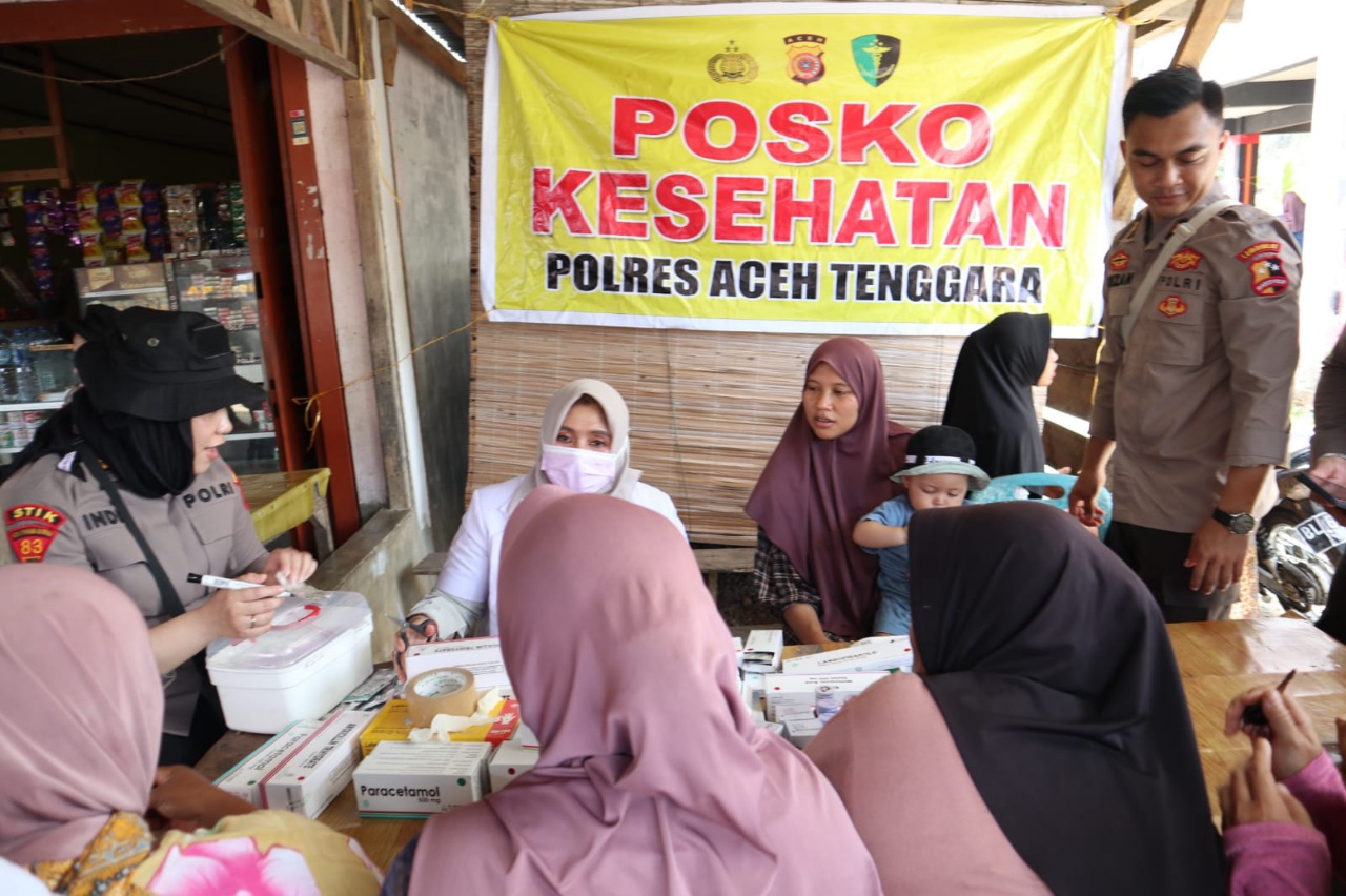 Tak hanya berfokus pada pemulihan trauma, Polres Aceh Tenggara turut menghadirkan posko kesehatan gratis. Melalui layanan ini, warga dapat memeriksakan kesehatan sekaligus menerima obat-obatan secara cuma-cuma, sehingga manfaat kegiatan benar-benar dirasakan langsung oleh masyarakat.
