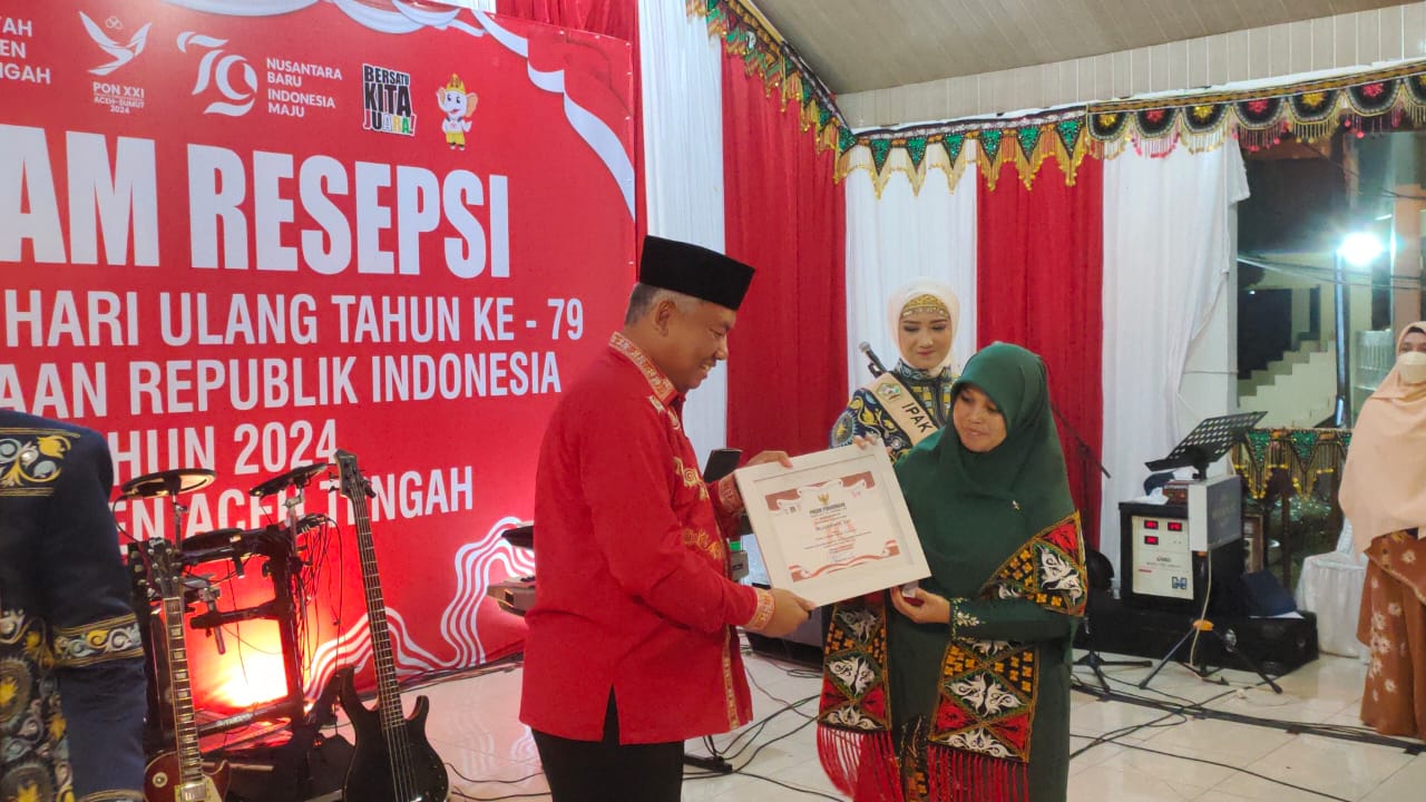 TAKENGON (Waspada): Pada malam Resepsi HUT Ke-79 RI 10 pegawai terbaik Rumah Sakit Umum Datu Beru (RSUD) Takengon dapat penghargaan, Sabtu (17/8).