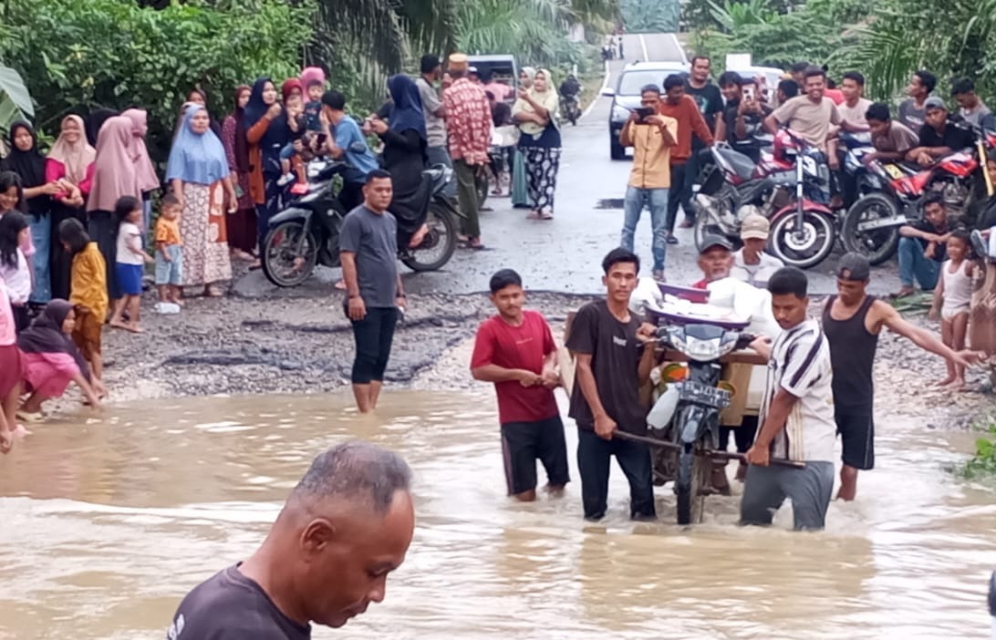 “Arus transportasi terhenti, karena luapan air sungai mengakibatkan genangan air di lokasi jembatan ambruk dengan ketinggian mencapai 80 centimeter, sehingga kendaraan rendah tidak berani menerobos. Bahkan sejumlah kendaraan roda dua juga harus digotong ramai-ramai,” pungkas Agus Kiswanto. (b11).