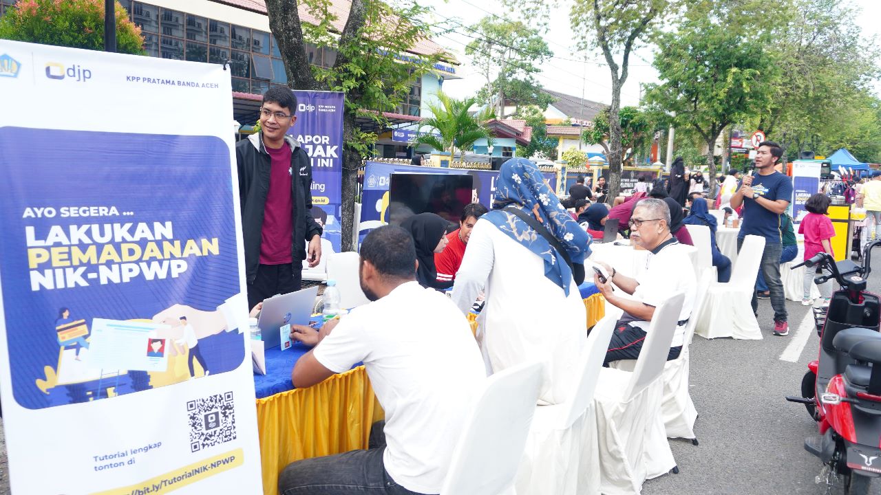 Dalam kegiatan ini, para Fungsional Penyuluh Pajak beserta pelaksana Kanwil DJP Aceh dan KPP Pratama Banda Aceh membantu Wajib Pajak memadankan NIK sebagai NPWP. Sebagian besar pengunjung yang hadir antusias bertanya terkait program pemadanan NIK sebagai NPWP dan bagaimana cara melakukan pemadanannya.