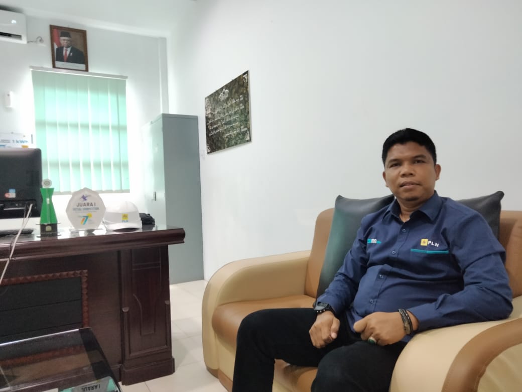 Selasa (28/2) pagi, Manager PLN Unit Layanan Pelanggan (ULP) Simeulue, Syahrul Zulputra di sela kesibukannya mengatasi masalah listrik Simeulue yang kompleks, memberikan luang untuk Waspada.