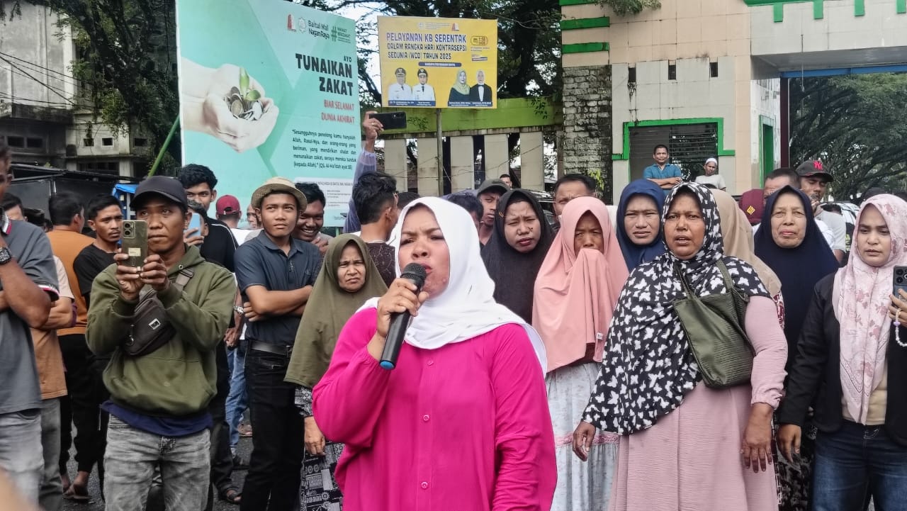 NAGAN RAYA (Waspada.id): Ribuan masyarakat menolak tutup tambang di Nagan Raya. Aksi penolakan di jalan Poros Utama gerbang Lueng Baro Suka Makmue Kabupaten Nagan Raya, Sabtu (4/10).