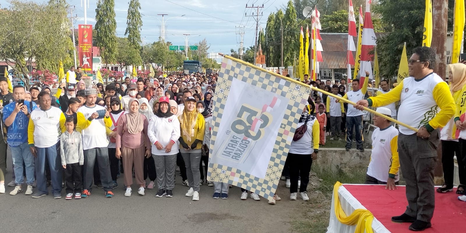 Foto utama: Dalam rangka memeriahkan HUT Ke 58 Partai Golkar. Pj Bupati Pidie Ir Wahyudi Adisiswanto, MSi bersama istri ikut jalan sehat bersama ribuan peserta, Minggu (16/10). Waspada/Muhammad Riza