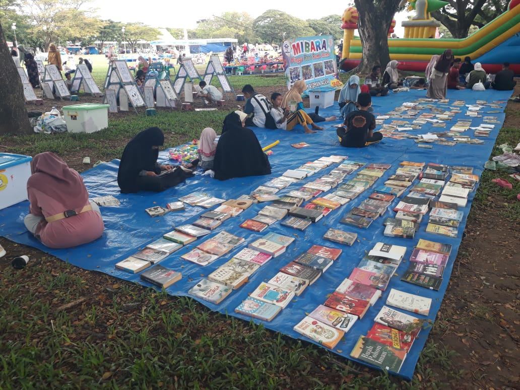 Pada saat bersamaan, pendiri dan Pembina PKBM Ruman Aceh, Ahmad Arif, menyapa para pengunjung dan juga masyarakat yang melewati lapak mereka sembari membagikan 120 eksemplar buku berjudul “Ketika Kata Menjadi Mantera” sebagai hadiah atas momen 11 tahun MIBARA.