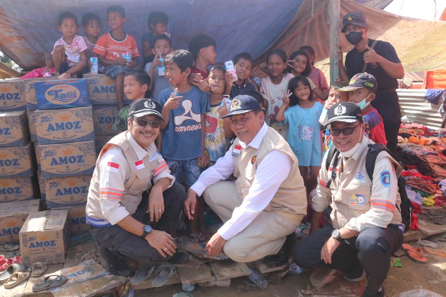 Di Aceh Tamiang, BHS didampingi Dirut PT Dharma Lautan Utama, Erwin H. Poedjono bersama sejumlah staf mengunjungi 3 posko pengungsian dengan membawa kebutuhan warga korban banjir.
