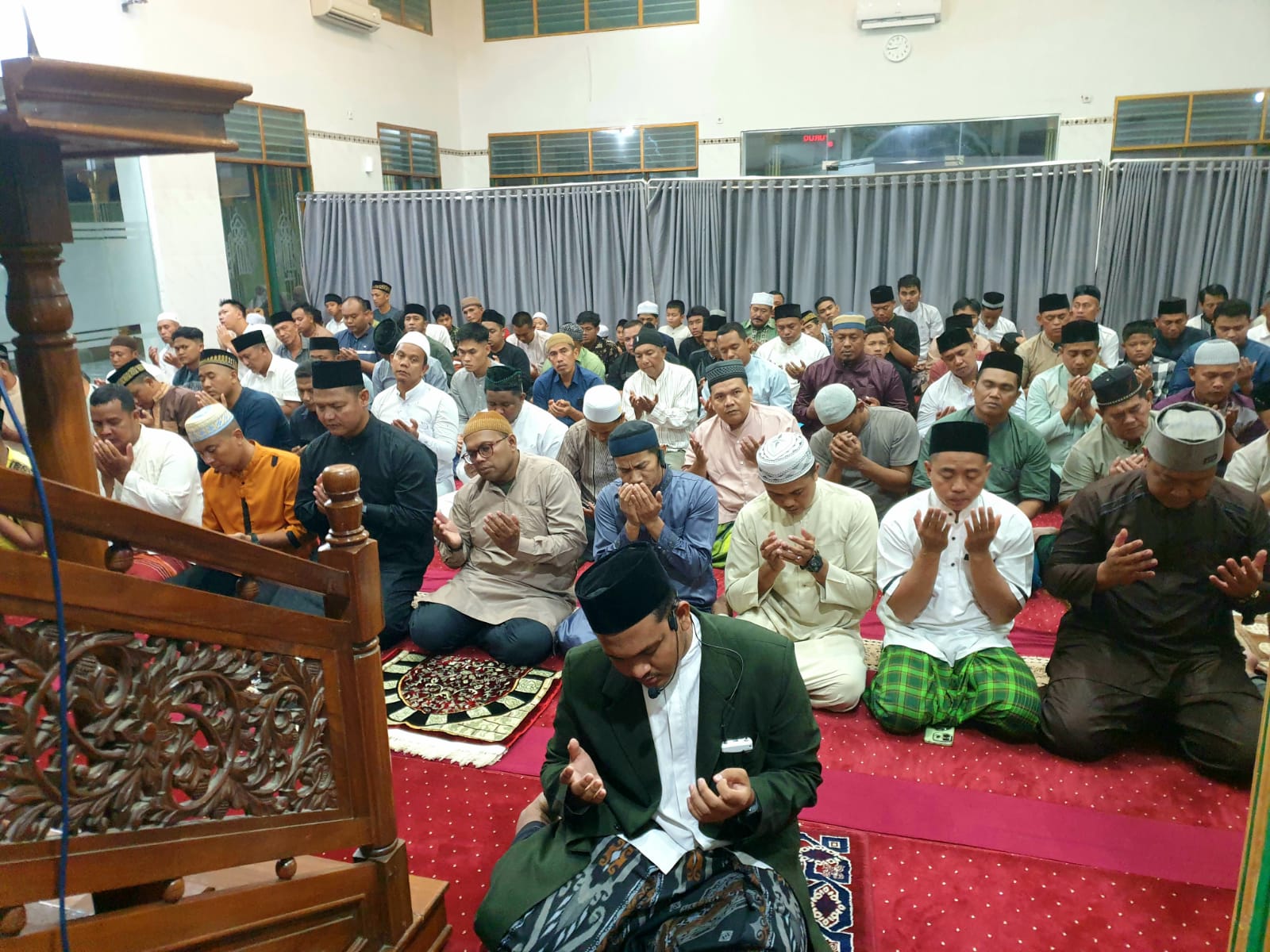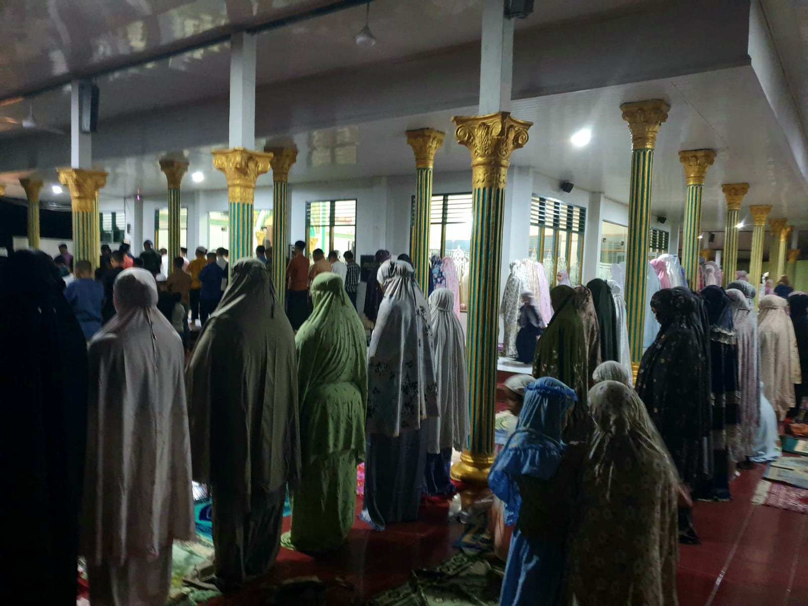 Suasana tarawih berlangsung khidmat, tampak Komandan Korem (Danrem) 011/Lilawangsa, Kolonel Inf Ali Imran, Ketua Persit KCK Koorcab Rem 011 PD IM, Ny Dini Imran serta para pejabat TNI bersama keluarga besar dan masyarakat.