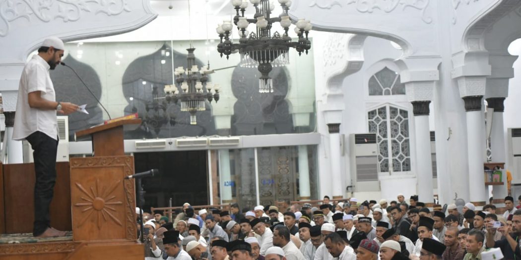 BANDA ACEH (Waspada): Gubernur Aceh, Muzakir Manaf atau akrab disapa Mualem melaunching Instruksi Gubernur Aceh Nomor 1 Tahun 2025 tentang Pelaksanaan Shalat Fardhu Berjamaah bagi Aparatur dan Masyarakat serta Mengaji di setiap Satuan Pendidikan di Aceh, pada Minggu, (16/3).