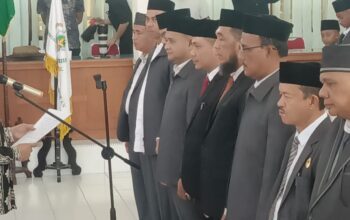 LANGSA (Waspada): Muzakir, SH dari Partai Nangroe Aceh (PNA), resmi dilantik menjadi Anggota Dewan Perwakilan Rakyat Kota (DPRK) Langsa, sebagai Pengganti Antar Waktu (PAW) sisa masa jabatan tahun 2019-2024 menggantikan Fajri, di ruang DPRK Langsa, Senin (5/8).